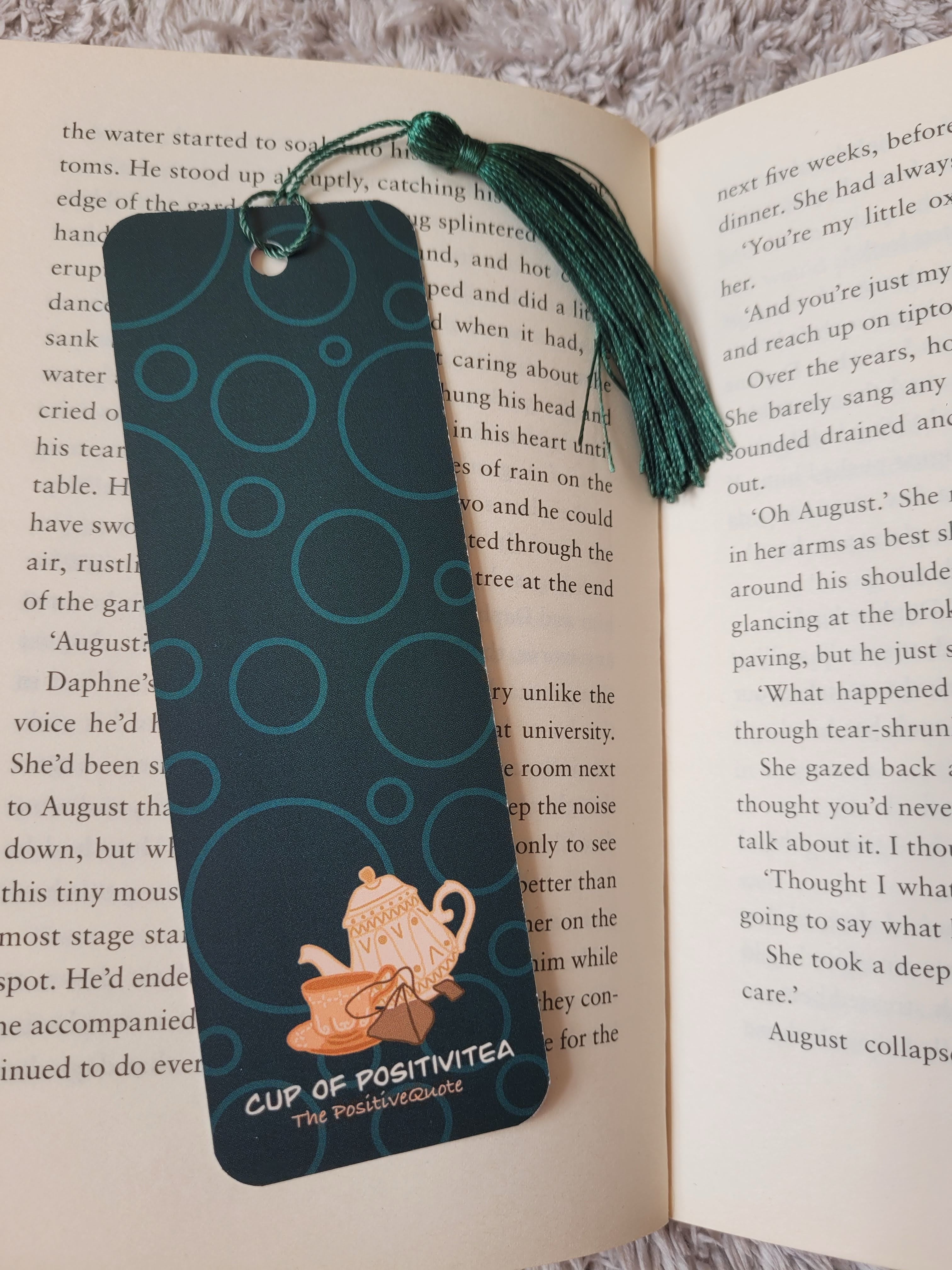 This positive tea inspired bookmark is the perfect accessory for all you book lovers, readers and tea connoisseurs. Full of teacups, teapots, tea love and teabags. Designed by myself and turned into a lovely bookmark which is the perfect size to fit into all your books without being damaged.