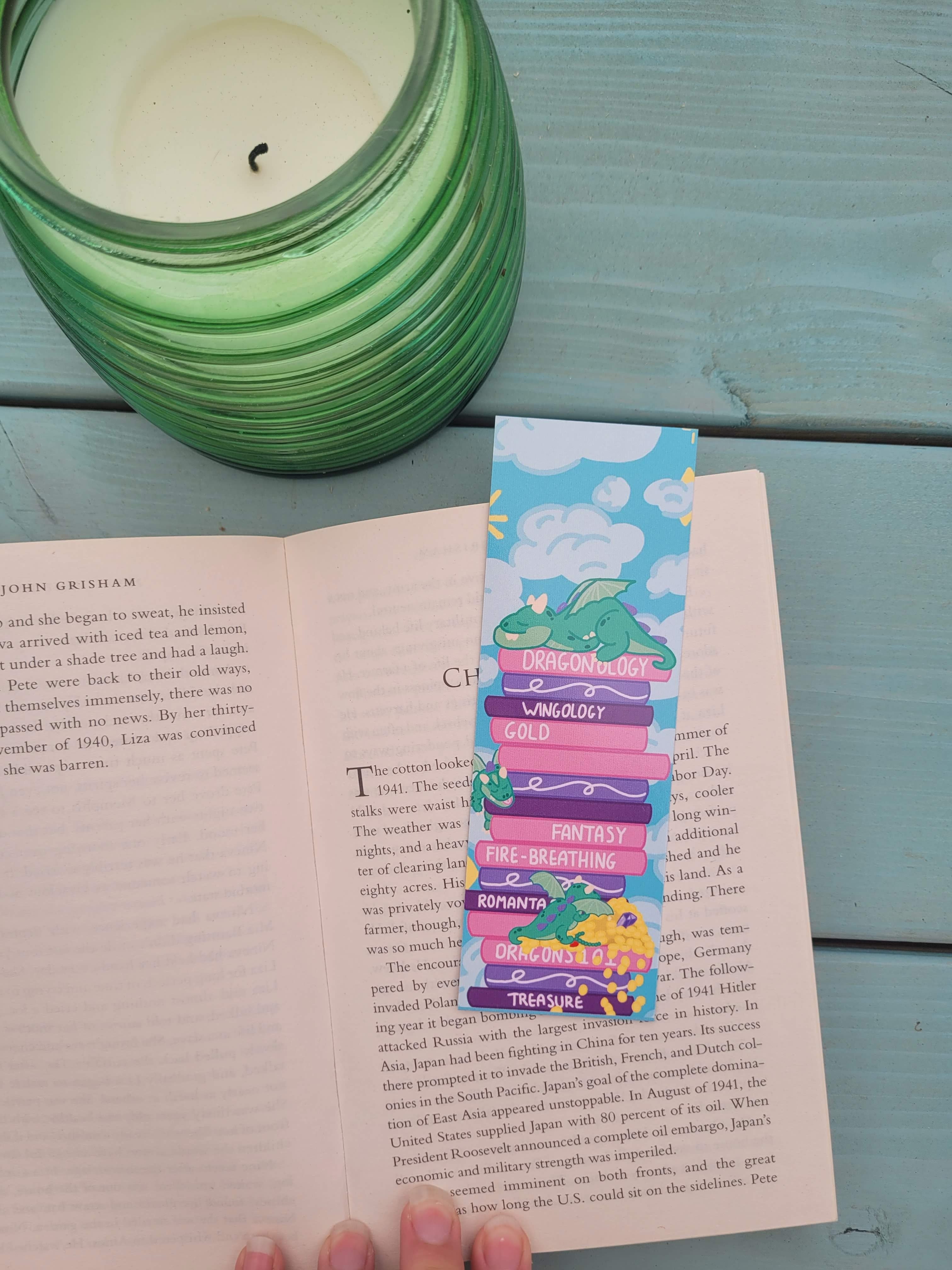 Whether you're reading under the sun or curled up past midnight, this little dragon will keep your place safe until your next chapter.