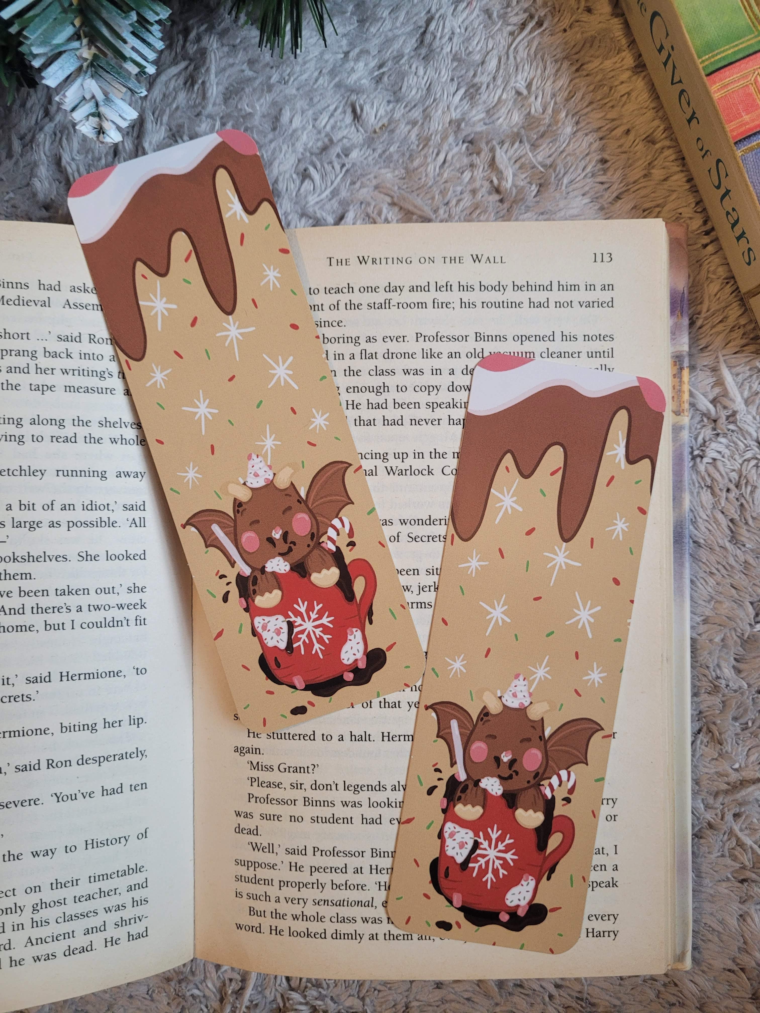This little dragon is a series of hot chocolate artworks. This one is your classic milk hot chocolate with cream and marshmallows. Even topped with sprinkles, if you love cozy reads during the winter then this is the perfect bookmark for you, cosy Christmas and warming vibes are all the bookmark supplies.