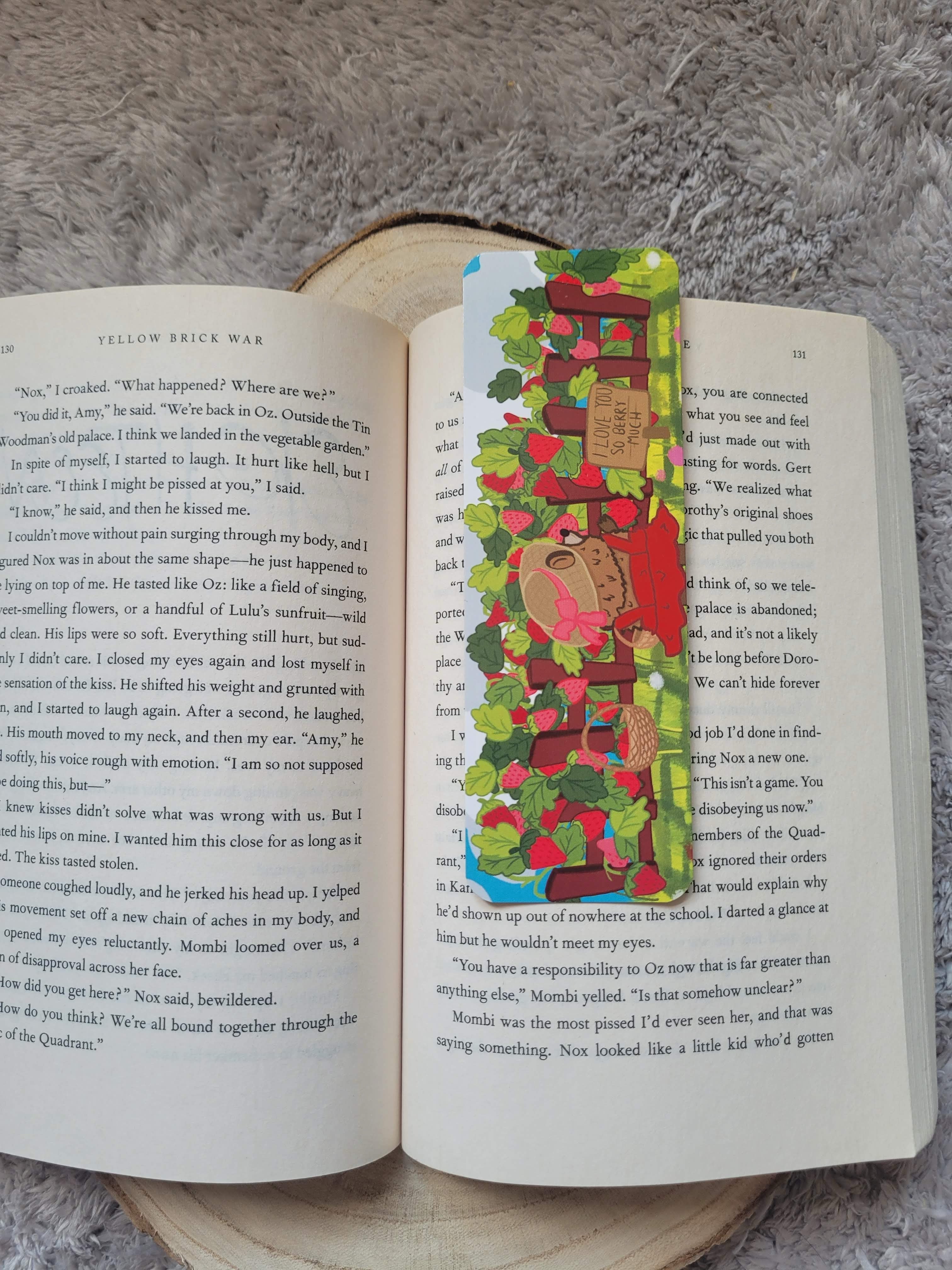 This bookmark is perfect to hold which page you’re on in your book. Henrietta the hedgehog is a sweet and wild spirit with a love for strawberries and gardening. She makes such a cute kawaii style bookmark. She is designed and drawn by my on procreate. It is printed and cut elsewhere, then i trim off the corners to make them round and smooth.