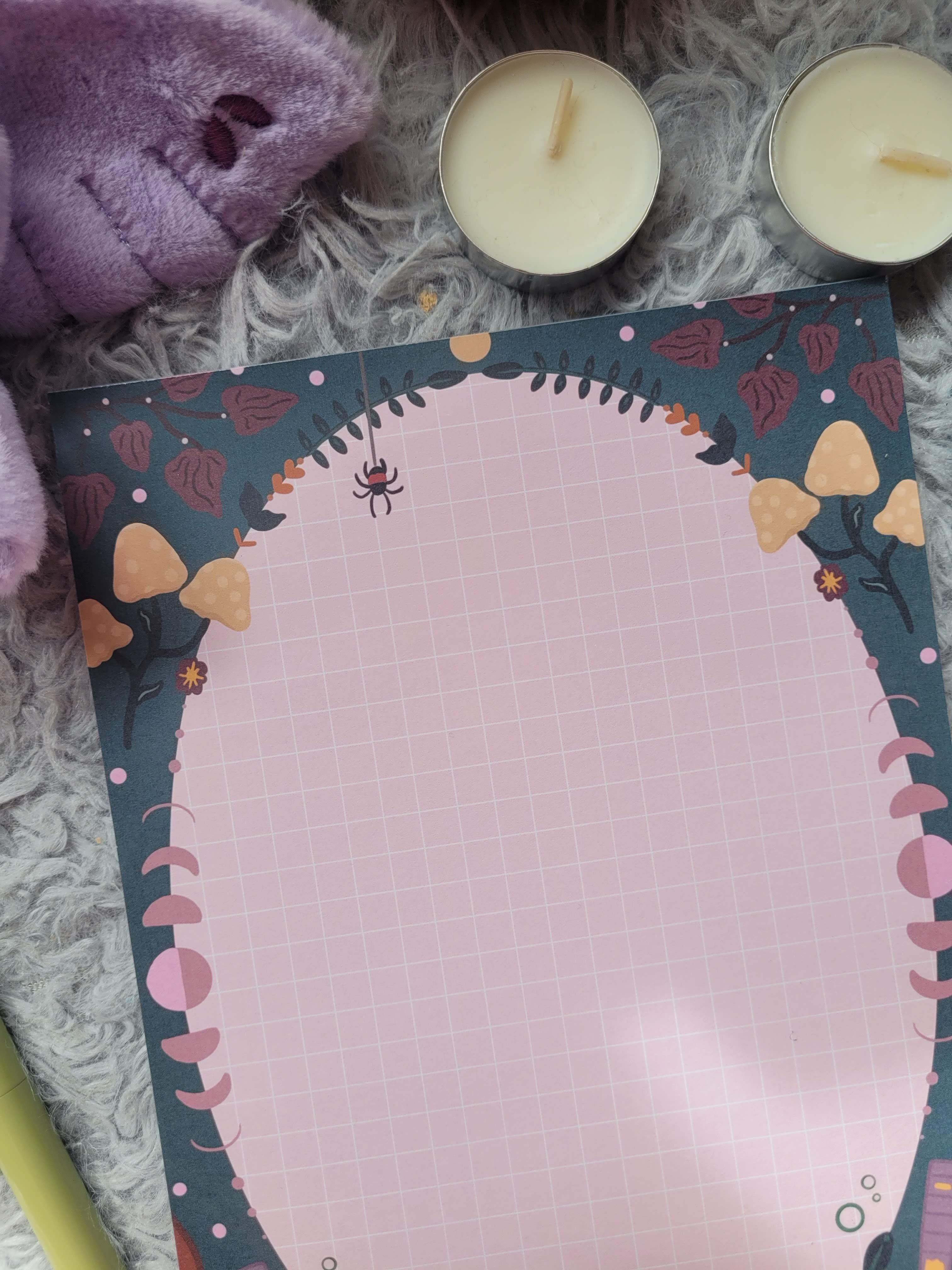Conjure some everyday magic with this A5 witch-themed memo pad, perfect for spells, notes, lists, and little scribbles from the otherworld. With 50 grid-lined pages, it’s ideal for keeping your thoughts neatly organized while adding a mystical vibe to your desk.