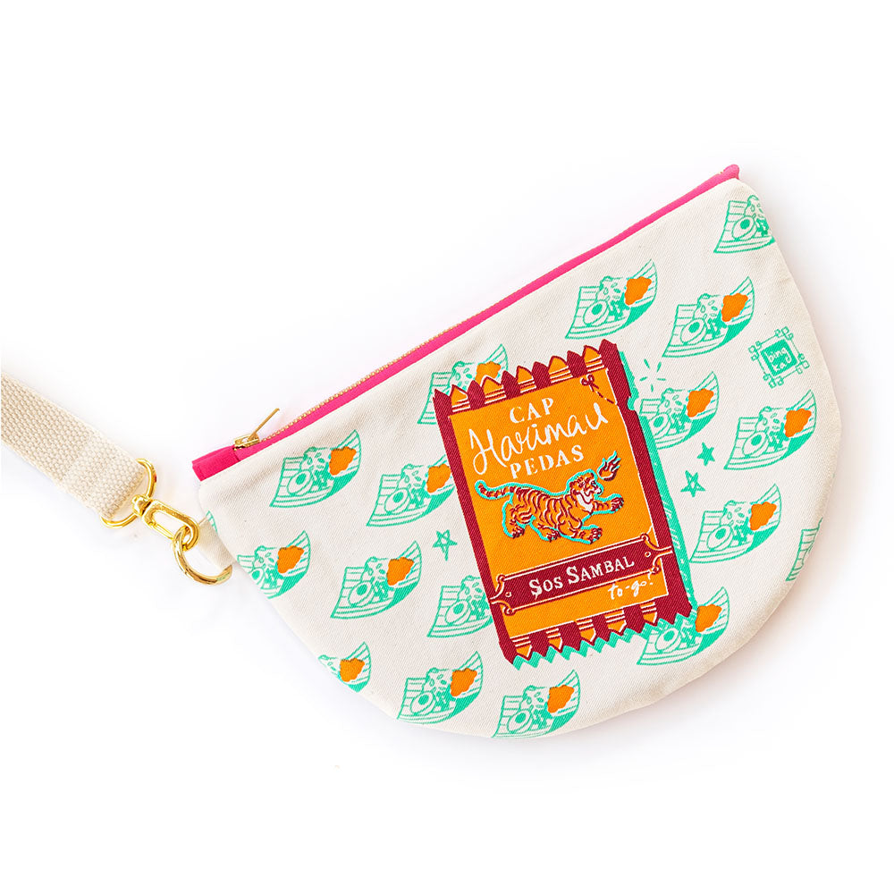 Love your foods hot and spicy? Show it by taking your outfit up a notch with the Harimau Pedas Pouch! It's great as a clutch with its handy wristlet strap and it's nicely padded to keep your necessities safe and comfy. Give our pouch ago, it's sure to give a fiery kick to any ensemble!
