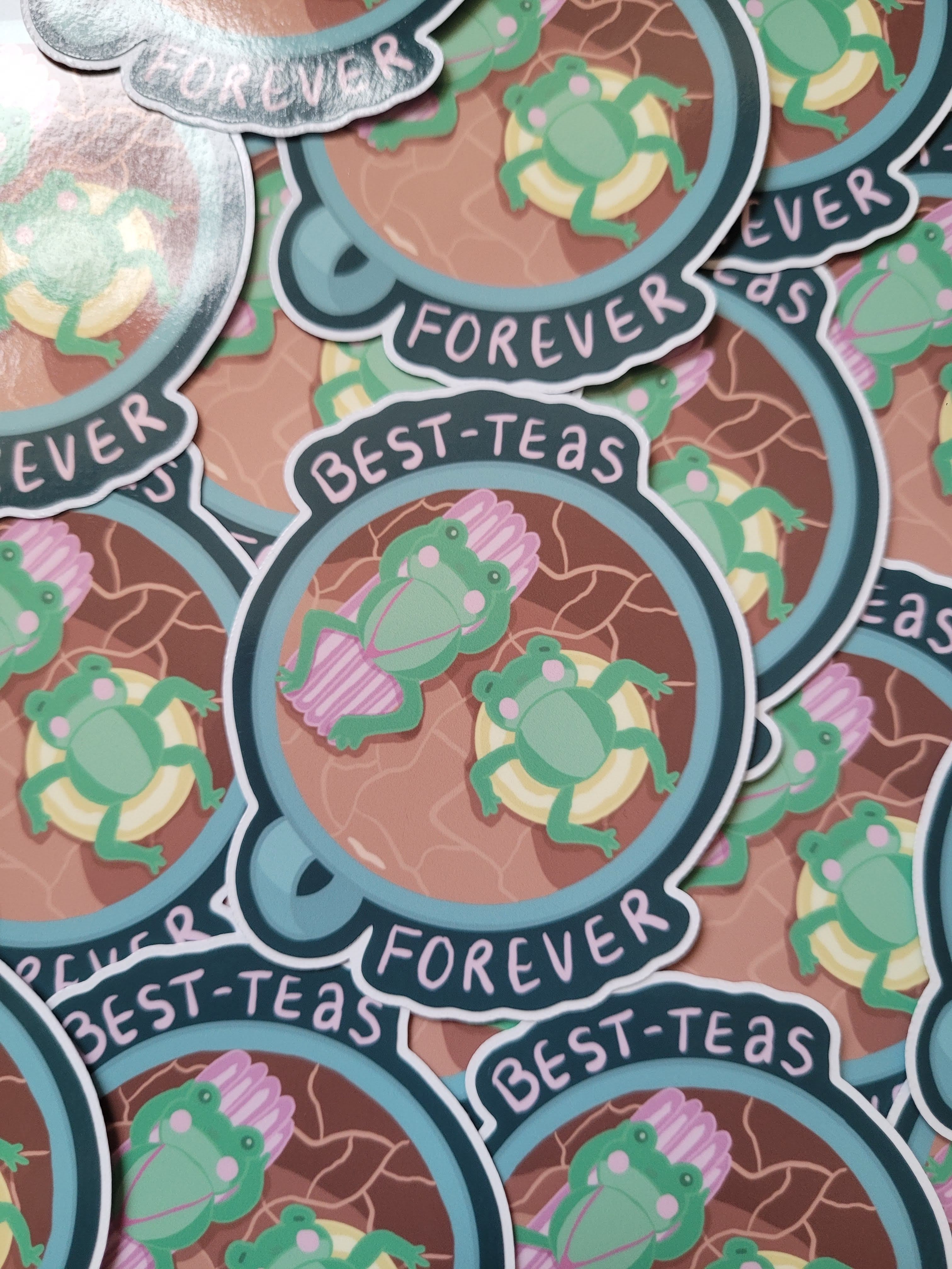 These 2 cheeky chaps lounging on their inflatables make for the best pair of friends. Best teas forever. Drink and chill vibes. This sticker is the perfect accessory for your kindle, iPad, patio and even water bottle. If you loves, tea, frogs and fun puns then this is a must for you.