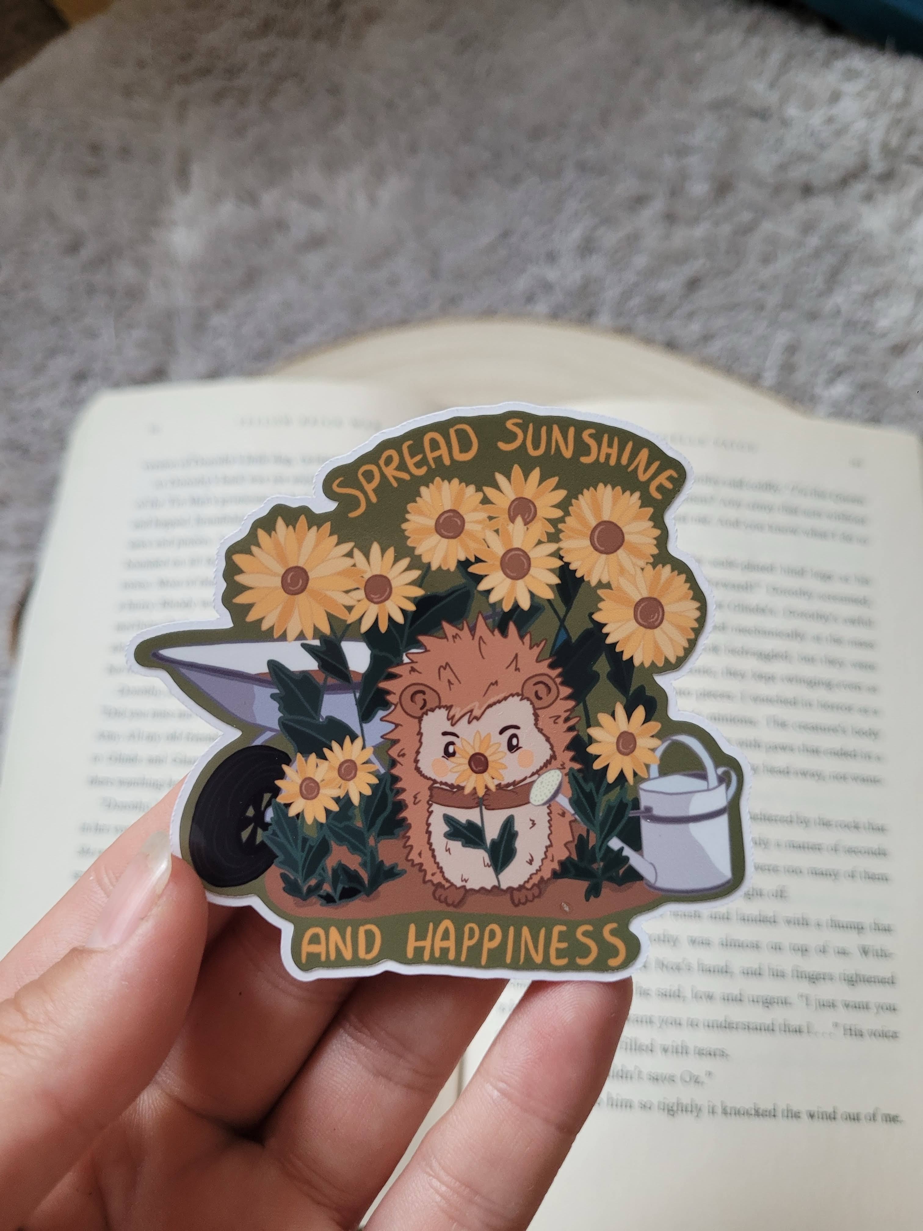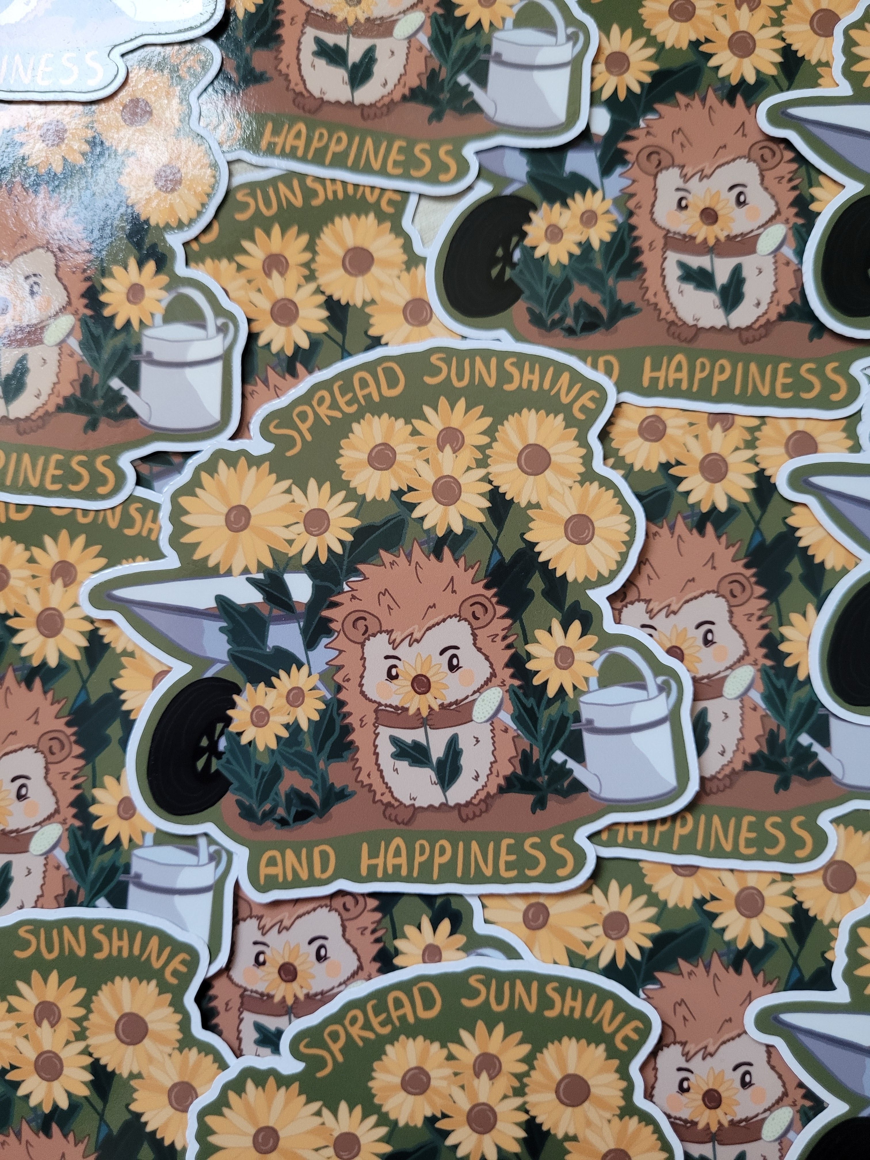 This little guy is the perfect way to remember to spread sunshine and happiness around the world.  Owen and his sunflowers is the perfect size to add to your kindle, iPad, laptop and water bottle. Or anywhere else you want to place it.