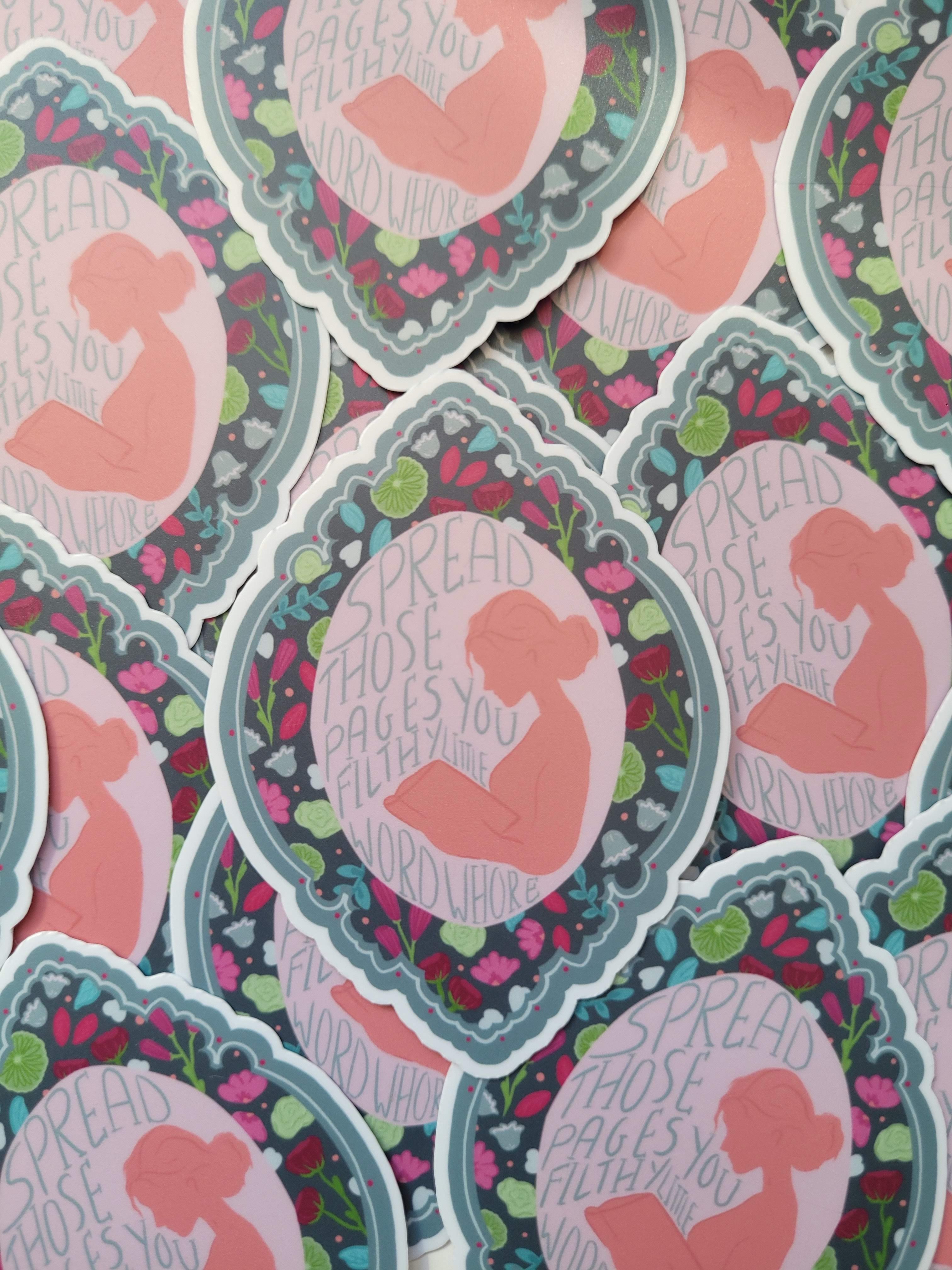 "Spread Those Pages, You Filthy Little Word Whore" Sticker 📚🌸