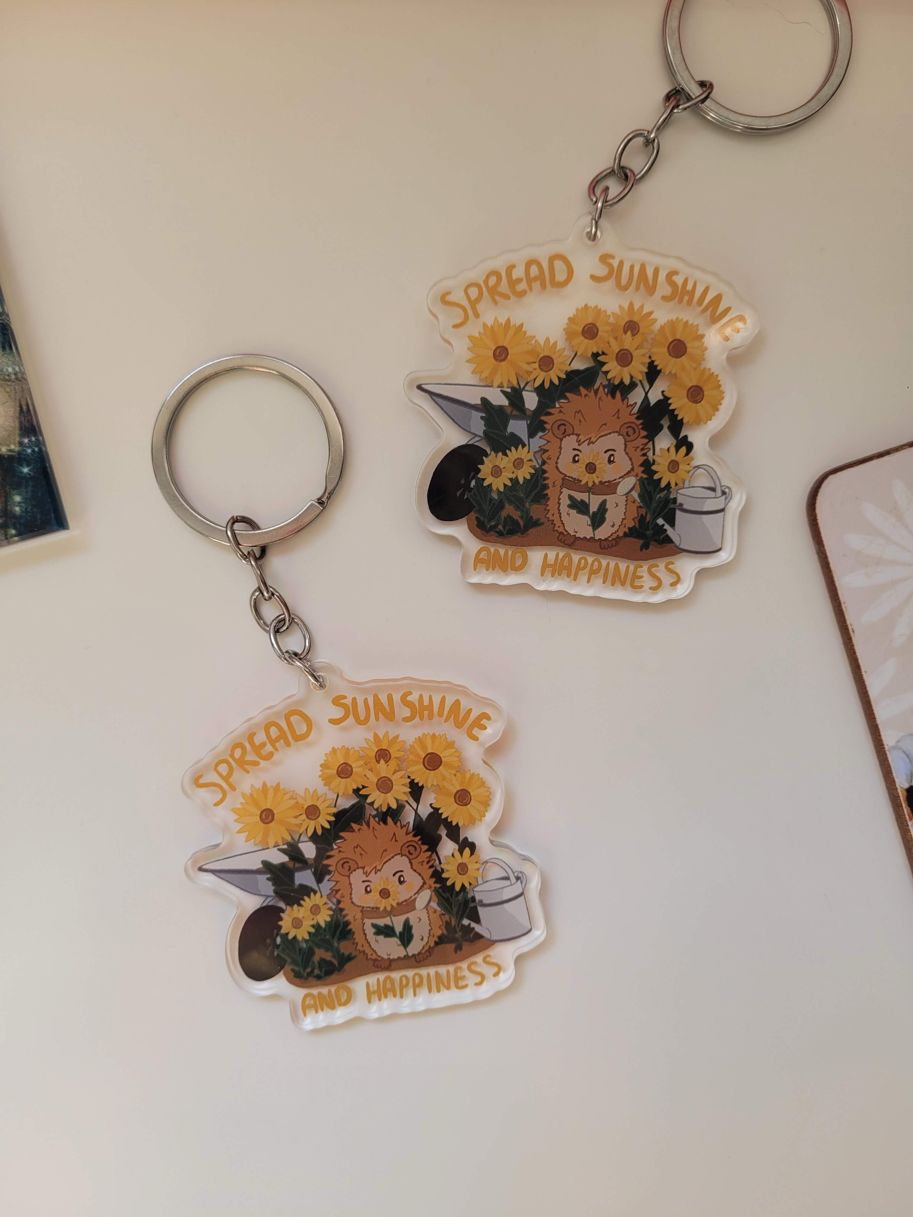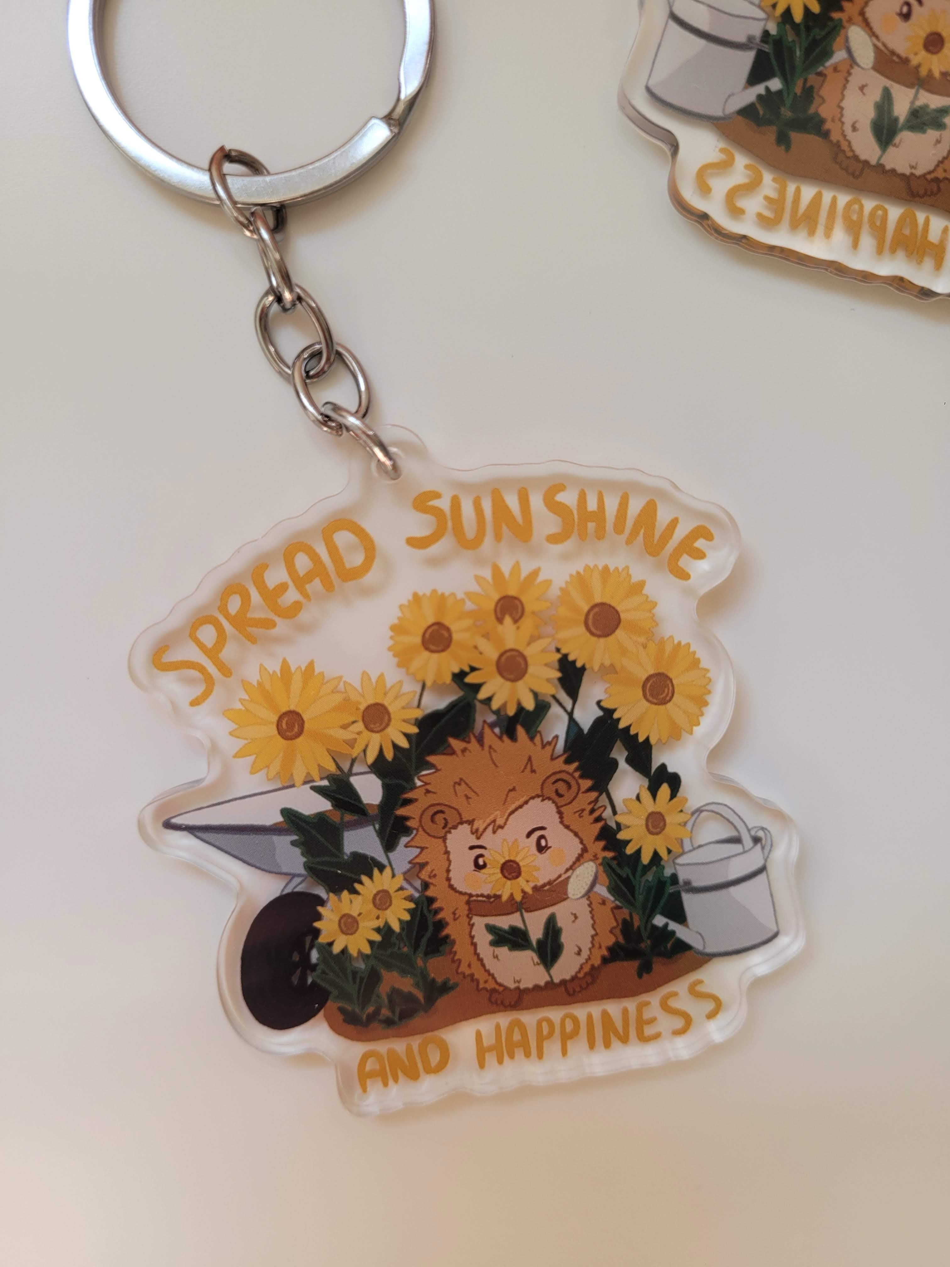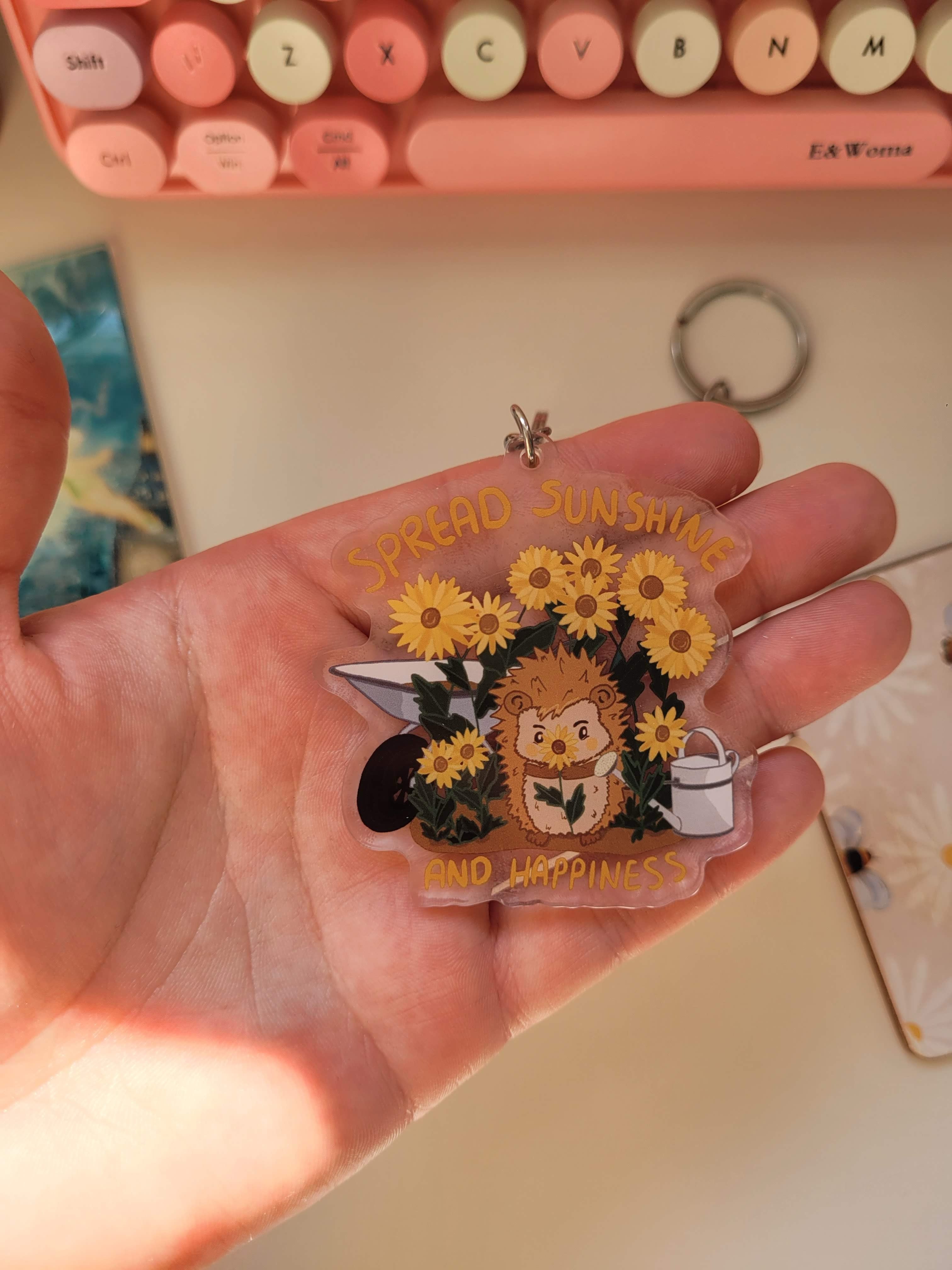 Owen the Hedgehog Acrylic Keychain – “Spread Sunshine and Happiness” 🌻🦔