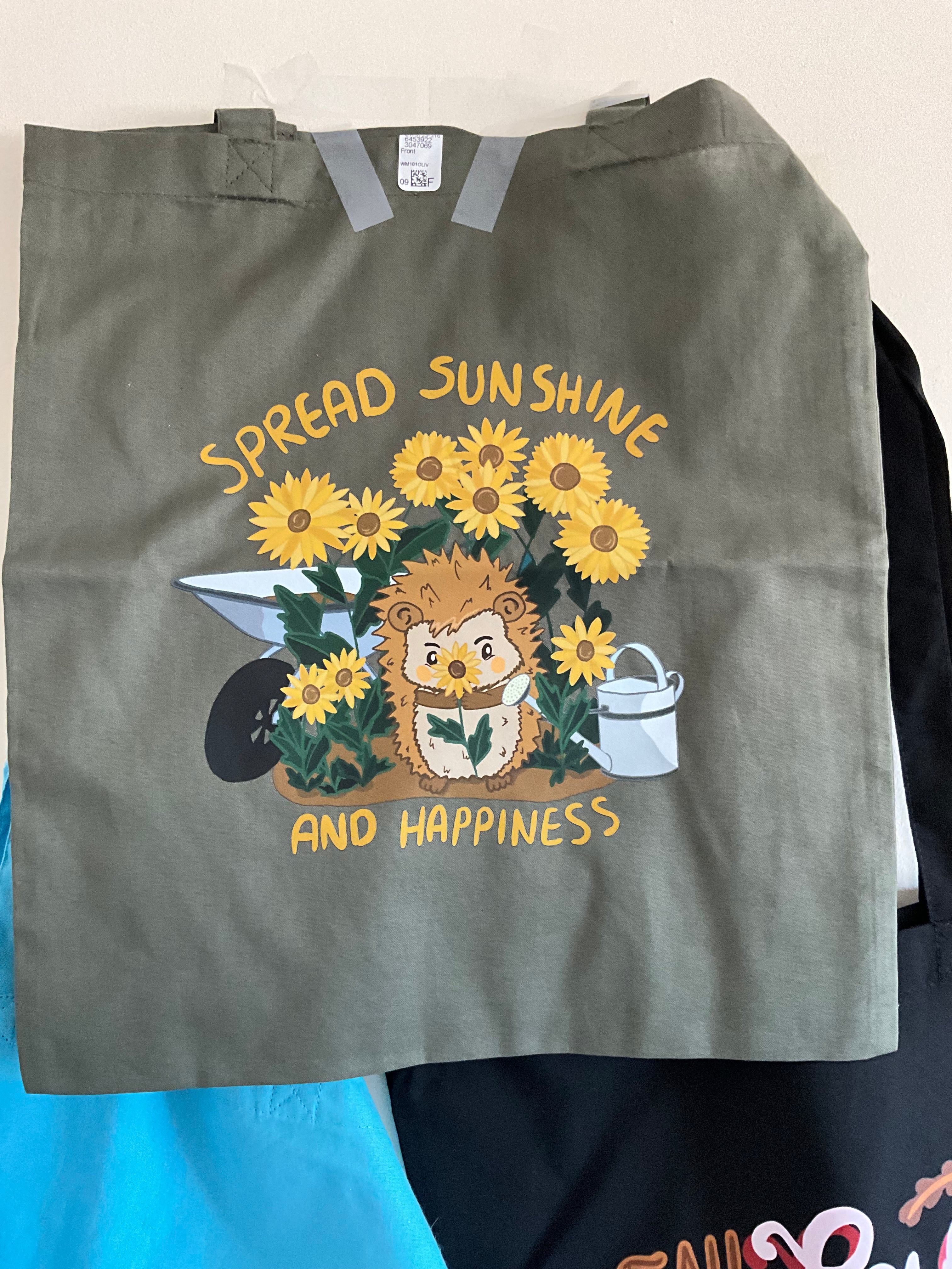 This lovely tote bag is the perfect accessory to carry all your everyday needs and necessities. Owen the hedgehog will put a smile on your face wherever you go with his little sunflower spreading sunshine and happiness the whole time.